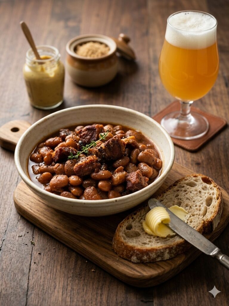 Biała fasola w stylu Nowej Anglii: z wędzonym boczkiem i słodko-słonym sosem